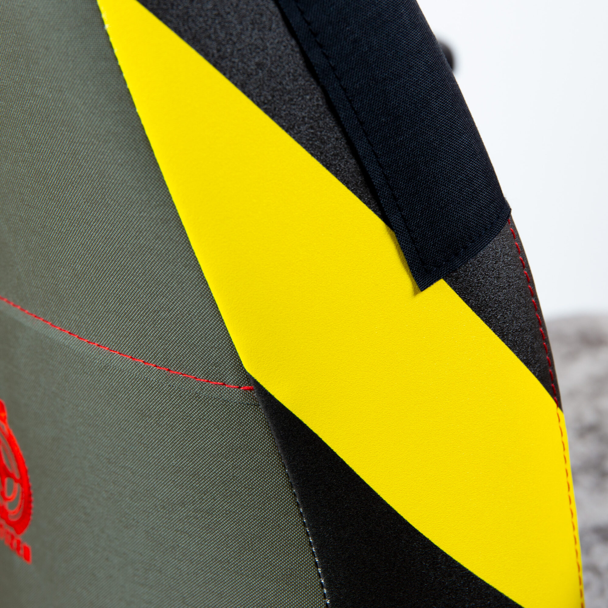 Die Rückenlehne besteht zu 100% aus CORDURA® Mil-Spec Gewebe. Das beschichtete, strapazierfähige Gewebe besteht aus hochfestem, luftstrahlstrukturiertem Nylon. Es wurde speziell auf Farbechtheit, Bruchfestigkeit, Reißfestigkeit, Wasserabweisung, Farbe und mehr getestet, um militärische Standards zu erfüllen.