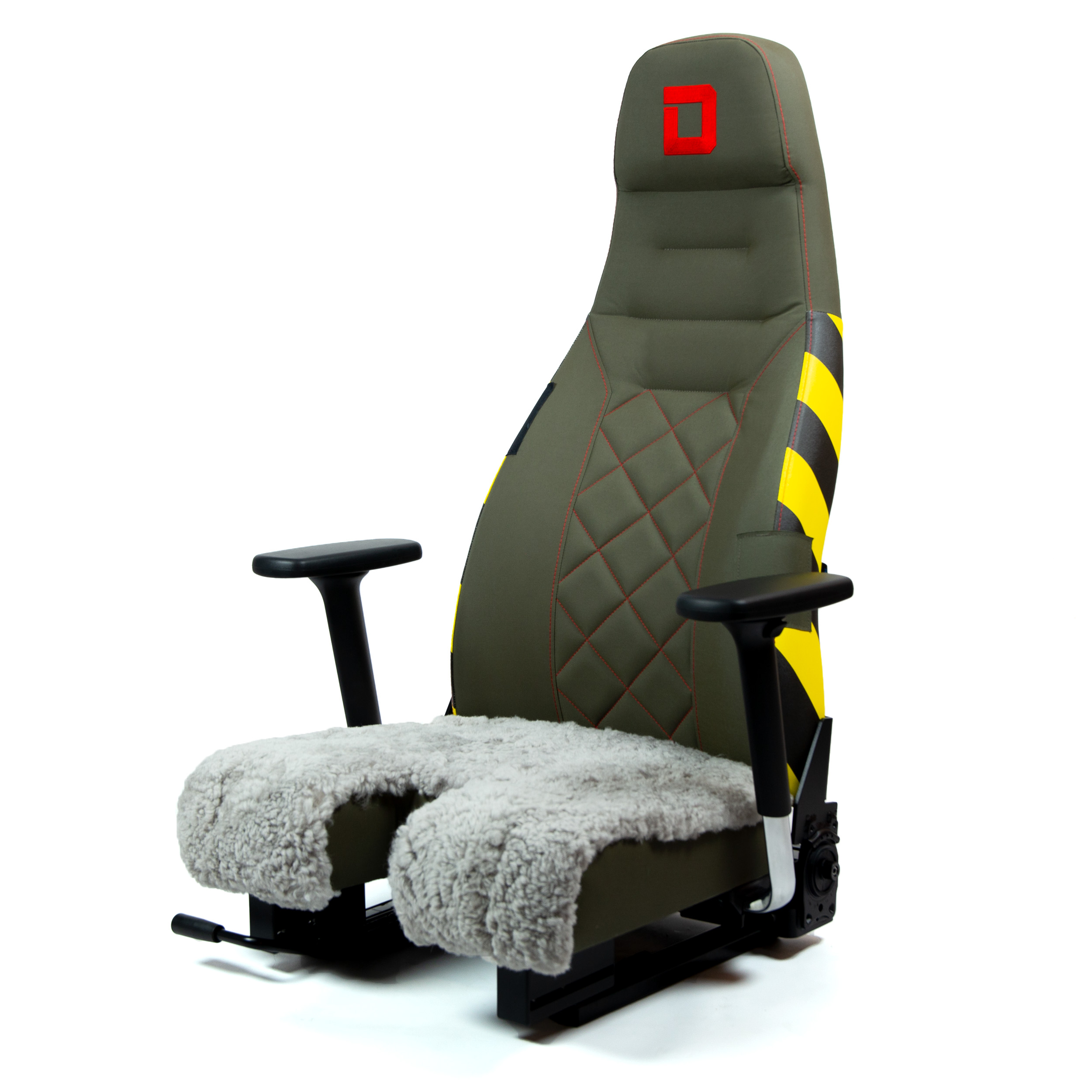 Hohe Qualität, Ergonomie und gutes Sitzgefühl werden im Pilotensitz mit einander verbunden und gleichzeit auf Kompatibilität mit verschiedenen Steuerungsetups Wert gelegt.